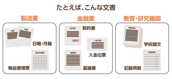 このように、文書管理のさまざまなシーンで活用できる「DocuMaker Office」。相原氏は「多くの企業が抱える文書の悩みは、特定の業界に限ったことではなく、どんな業界にでもあてはまるもの」と語る。事実、「DocuMaker Office」の発表以来、医療や前述の建設以外でも人材派遣会社や不動産企業など、さまざまな業界・業種の企業から引き合いがあるという。確かに、製造業であれば日報・月報や物品管理票、金融業であれば契約書や入金伝票、稟議書、教育・研究機関であれば学術論文や研究報告に使うデータ収集用の記録用紙があるように、文書を扱わない業種は存在しないだろう。