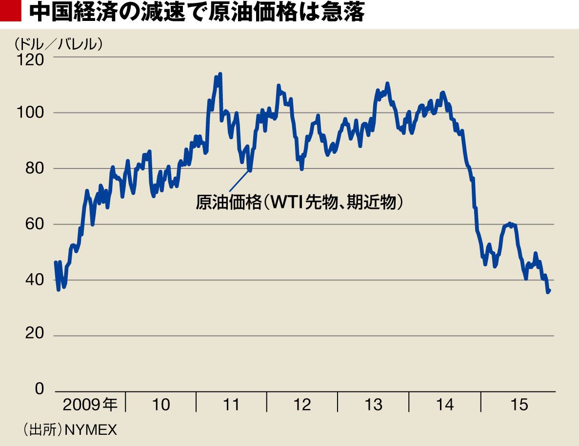 リーマンショック後に、指標となるWTI(期近物先物)で1バレル30ドル台にまで下落していた原油は、先進諸国の大胆な金融緩和と中国など新興国の高成長を背景とした需要の拡大予想で、1バレル100ドル程度で推移していた。しかし、アメリカがQE3(量的緩和政策の第3弾)を終了して金利引き上げに向かい、中国経済の減速が目立つようになると、1バレル30ドル台に下落している。