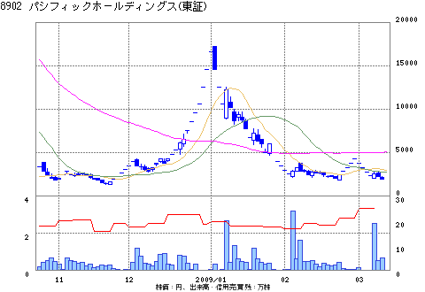 パシフィックホールディングスは10日、東京地方裁判所に会社更生手続き開始の申し立てを行った。負債総額は約1636億円(重複分を除き、連結子会社2社との合計で約1940億円)。今年3月末日を期限とする借入金約840億円の返済のメドが立たなくなったのが直接の原因。10日夜に記者会見した織井渉社長は、「2月27日までに(優先株出資の)入金が得られず、信用不安が急速に拡がった。出資の協議は継続してきたが、3月末の資金繰りを考えると厳しい状況だ」と話した。スポンサーについては、「現状、具体的なスポンサーはいないが、管財人とともに努力して探していきたい」(織井社長)と述べるにとどまった。