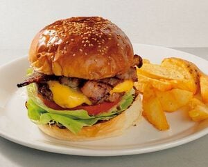 つなぎなしという100%ビーフをハンドチョップでパティに仕込み、炭火で焼いたバーガーは、とくかく肉肉しい。ハンドメイドソースや、桜とヒッコリーで燻したベーコンなど、脇役にもこだわり抜いたベーコンチーズバーガーは絶品。