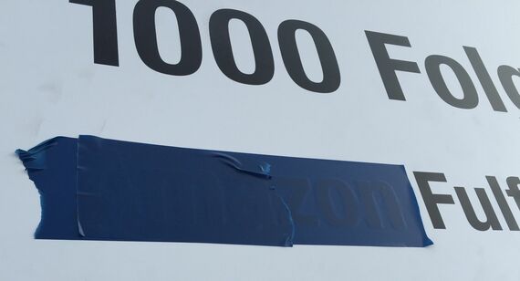 今年2月下旬に筆者が訪れた際、看板にはガムテープが貼られていて、裏には「Amazon」の文字が書かれていた。これはフルフィルメント物流センターを、アマゾンが秘密にしているからに他ならない。現在、このガムテープがどのようになっているかは分からないが、少なくとも、アマゾンはバークレーで物流センターを稼働させているとは発表していない。