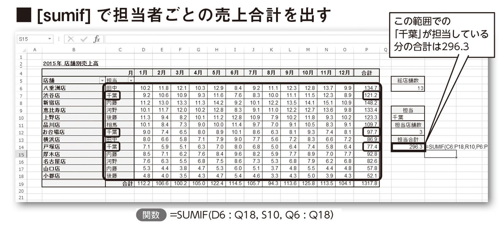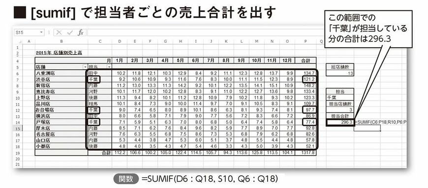 [sum]は選択した範囲の値を合計します。[sumif]は条件にあった値を合計します。[sum]を使うことは多いですが、[sumif]も使えるようにしておきましょう。