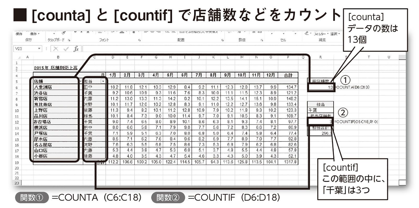 [counta]は値が入っているセルの数をカウントする関数です。データの入力漏れがないかを確認したり、大量データの個数をカウントしたりするときに使います。