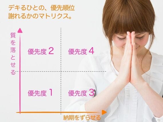 緊急度や重要度といった客観的な判断は難しいですが、謝れば……は相手次第で判断がしやすい。相手にとっては真摯に映るので、信頼関係にプラスになることも。デキるひとならではの「奥の手」とも言えます。
