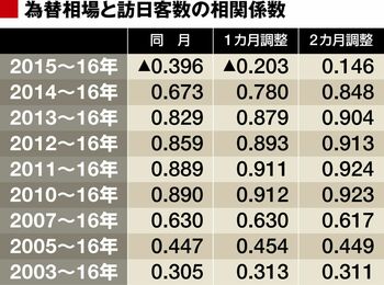 よりわかりやすいところで言えば、1990年代は1ドル140円前後で、現在の1ドル110円前後と比べても、顕著に円安でした。にもかかわらず、日本の外国人観光客は、現在と比べても極めて少なかったのです。観光客数が増加したのは円安だからと言うのであれば、1990年代はもっと円安だったのに、訪日客がそれほど来ていなかったことを説明する必要があります。