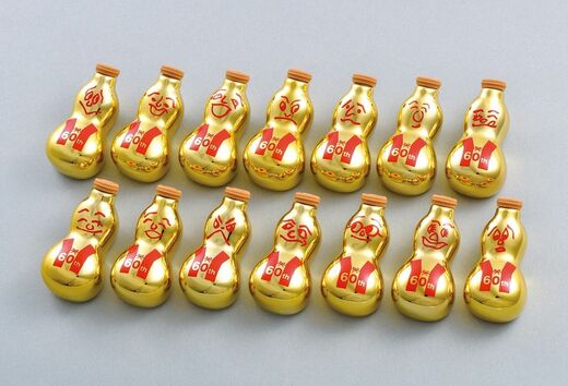 ホールに着くと、すでに大勢の見学者が座って待機していた。一人で来ているのは私だけのようだ。周りにはガラスケースに入れられた歴代の「ひょうちゃん」(醤油入れのキャラクター)や、シウマイ弁当の掛け紙などが飾られている。まずはビデオ上映で崎陽軒の歩みや製造工程を知る。