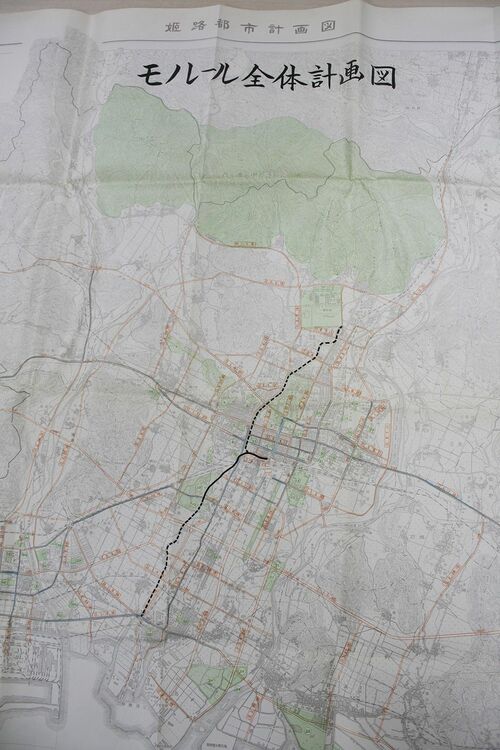 国立公文書館には、当時の姫路市が運輸省に提出した地方鉄道免許申請書などの関係文書が残されている。その中には「モノレール全体計画図」と題した路線図もあった。