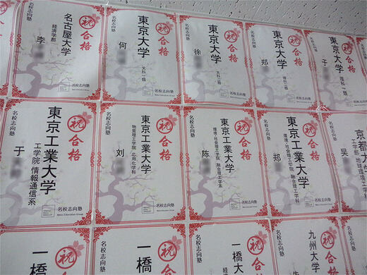 雑居ビルの中を改装した校舎を見渡すと、壁一面に、これまでに同校の学生が合格した大学名と氏名がズラリと貼り出してあった。ざっと見渡したところ、東京大学、早稲田大学、東京工業大学、京都大学、名古屋大学、一橋大学、慶應義塾大学などの名前が目につく。いずれにしても、日本を代表する有名大学ばかりだ。毎年、これらの有名大学や大学院に合格者を多数輩出していると聞き、私は驚いた。