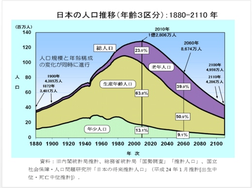 森田:それを示しているのが2つめのグラフです。「日本の人口推移(年齢3区分)」を見てください。こういうカーブになるんです。