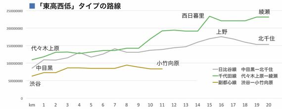 これらの路線の反対で、西側に向かうにつれて輸送量が減る「東高西低タイプ」が日比谷線、千代田線、副都心線だ。副都心線の場合は南北を結んでいるため、正確には「北高南低」だ。