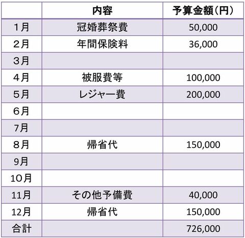 表1 Aさんの年間臨時支出予算