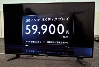 しかし、その4Kでも価格下落も始まっている。ネット企業のDMM.comは11月、55型の4Kディスプレー(テレビチューナーなし)を約6万円、65インチは15万9900円(それぞれ税別)と驚異的な低価格で発売している。家電ベンチャーと協力し、シンプルな機能でコストを限界まで下げた製品だ。