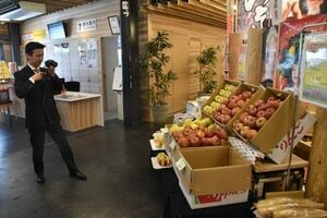 フロアの一角を、青森市在住の筆者には見慣れた「リンゴの山」が占めていた。オープン1周年記念イベント「寒中みそぎの郷まつり」の一環として、青森・岩手・宮城3県の特産品を集めた「東北物産フェア」が開かれていた。道南の海産物と青森リンゴ、盛岡冷麺、仙台の牛タンが並ぶ光景に、木古内町がコンパクトながら、東北と北海道の結節点として機能し始めている印象があらためて強まった。