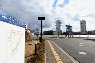 JR片町線の野崎駅から徒歩15分ほどのところにある、大阪府立消防学校。ここに、その車両は保管されている。校門をくぐって敷地内へ入ると、グラウンドの向こうに見慣れたスカイブルーの車体が見えた。その手前で、オレンジ色の服を着た人々が作業をしている。