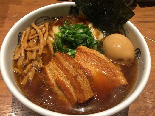 取材にあたって新宿総本店の「武蔵ら~麺」をいただく。仕事、盛り付け、お店のきれいさ、接客、本当に完璧なのである。当たり前がすべてしっかりできている。動物系と魚介系の二刀流スープ。すべてがビシッとしっかりまとまっていて寸分の狂いもない完璧な1杯といえる。