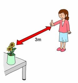 2.親指から一直線で見える位置、3メートルくらい先に目標物を決めます。