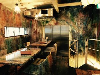 2014年には、隈研吾を起用して「焼き鳥屋 てっちゃん」をリノベーション。焼き鳥店とは到底思えないポップでエロティックな壁画と、アクリルで作られたテーブルとイス。2階に上れば、色とりどりのLANケーブルを壁が覆う。今年6月に開店したばかりの下北沢「てっちゃん」や夏にオープンする予定のコミュニティスペース「ハモニカ横丁 ミタカ」でも、隈研吾が腕を振るっている。