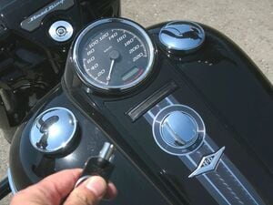車体まわりではダイナファミリーの人気車種「ローライダー」に注目したい。シートの後方に小さなクッションを追加することで、小柄な日本人でも安心して操れるライディングポジションを実現しているからだ。