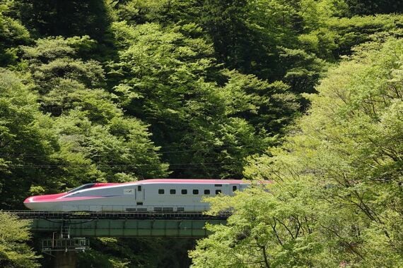 新緑の美しい5月、僕は秋田県と岩手県の県境である仙岩峠に向かった。ここは秋田新幹線「こまち」が峠越えをする風景を狙える撮影地だ。東京―盛岡間の東北新幹線区間では日本最速の最高時速320キロメートルで走行するスタイリッシュな新幹線車両E6系も、盛岡―秋田間の在来線区間では最高時速は130キロメートルにとどまる。とりわけこの仙岩峠の区間はカーブが多く、東北新幹線での疾走とは逆に、ゆったりとした速度で峠を走り抜けてゆく。