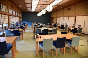 また、ハード面では、龍宮殿の食事処は、畳の上にテーブルといすを置くスタイルをとり、外国人のみならず、ご高齢で足の不自由な方などにも無理なく食事を楽しんでいただけるスタイルにした。