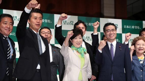 まさに"勝負師・小池"の面目躍如で、解散前日の27日午前の「希望の党」結党会見では、自民、民進両党からの離党議員など14人を従え、「寛容な改革の精神に燃えた保守」を旗印に「日本をリセットする」と首相を頂点とする巨大与党の打倒を目標に掲げて、拳を突き上げた。