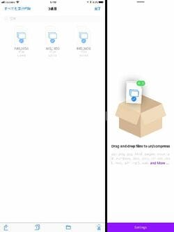 筆者のおすすめは、「Zipped」と呼ばれるアプリ。このアプリはファイルアプリの上にSplit ViewやSlide Overで表示でき、複数のファイルを選択した状態でドラッグ&ドロップするだけで簡単に1つのZIPファイルに圧縮可能。そのままメールなどに添付することもできる。120円と有料だが、圧縮は基本中の基本なだけに、購入しておくことをおすすめしたい。