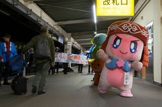 その途上では、駅で乗降するたびに地元の歓迎を受けた。それらの歓迎様式は、「ゆるキャラ」+「横断幕」+「首長(市町村長)」の“3点セット”での出迎えが基本だった。ツアーの当初こそ出迎えには新鮮味があったものの、後半になるにつれ、しだいに金太郎あめを思い出す代わり映えのしない行事と感じるようになった。前週に実施された1回目のツアーの歓迎行事を知り、横並びの意識で実施したのだろうか。各地でお骨折りいただいた方々には感謝するものの、同じパターンでは効果が限られてしまう点に残念さを感じた。