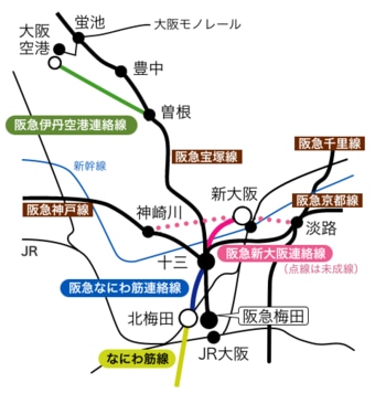 新線構想の接点となるのが、大阪市淀川区の十三駅だ。阪急梅田駅から3分。宝塚線、神戸線、京都線の3本線が集まるジャンクションで、乗降客数は阪急線内で6位。乗換客を含めれば梅田駅に次ぐ重要拠点となっている。