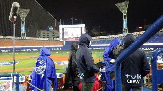 ベイスターズの勝利が決まると、グラウンドの外野部分に用意されていたロケット花火の打ち上げも行われた。いつものハマスタのゲームの時と同じ演出だ。