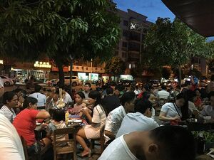 グループ店が3軒並んでいるのだがどのお店も超満員だった。韓国のように初老の男性ばかりではなく、家族連れの客、男女のペア、会社のグループなどさまざまな人たちが和気あいあいと食事を進めていた。文化に根付いた食事なんだな、と思った。