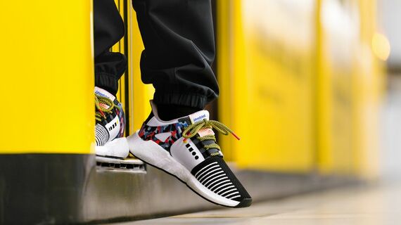 今回のプロジェクトは、ベルリン交通局(BVG)が今年90周年を迎えるのに合わせて行われたものだ。ベースとなる靴はアディダスが1991年から販売している人気モデル「EQT」に、地下鉄のシートの柄と同じデザインを施した。聞くところによると、ベルリンの壁崩壊が1989年の末だったこともあり、EQTは発売当時、旧東ドイツの若者の間で「西側の代表的なアイテム」としてもてはやされたという。