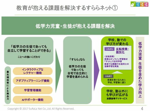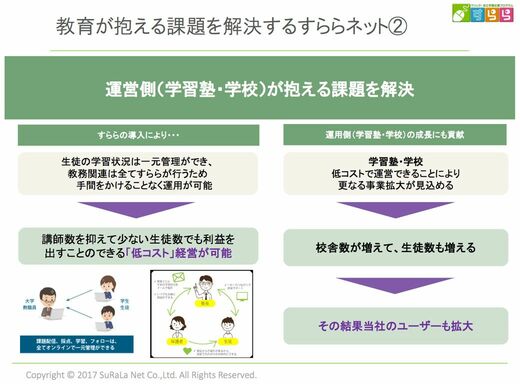 小林:御社の資料によれば、低学力の子どもたちにフォーカスを当てたeラーニングの教材を塾や学校に販売されているとのことですが、そうしますと進学塾ではなく補習塾を中心とした展開になってくるのでしょうか?