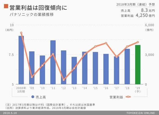同日発表された2018年3月期の業績は、売上高7兆9822億円(前期比8.7%増)、営業利益は3805億円(37.5%増)と好調で、7期ぶりの増収増益となった。2012年の社長就任以来進めてきた経営再建の成果が、ようやく実を結んだ形だ。