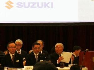 スズキが6月28日に静岡県浜松市内の老舗ホテルで開いた株主総会。鈴木俊宏社長がそう述べると、会場から大きな拍手が起きた。昨年の株主総会で実父の鈴木修会長から総会の議長の役目を譲り受けて今年が2回目。同年代で創業家の重責を同様に担う豊田社長と比べてエールを送ってきたという株主の声に応じた形だ。