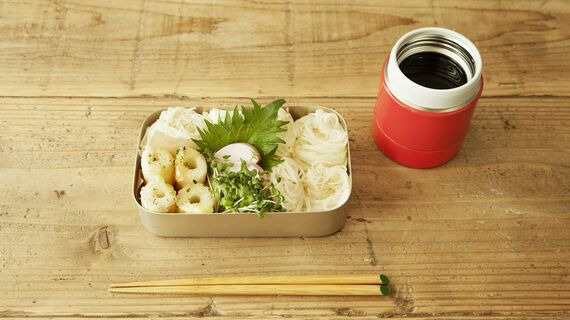 作り方のポイントは、フォークでそうめんを一口大に丸めること。麺つゆは、よく冷やして保冷容器に入れるか、小袋タイプを凍らせて保冷剤替わりに弁当箱のふたの上に載せておくとよい。「野菜やお肉などをトッピングとして載せると、栄養バランスもよいですよ」(天川氏)。