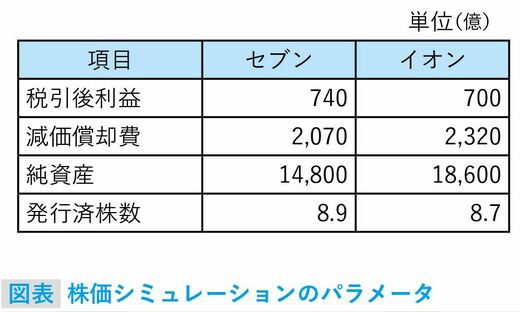 これを使って、セブン&アイ・ホールディングス(以下セブン)、イオンの株価をシミュレーションしてみる。