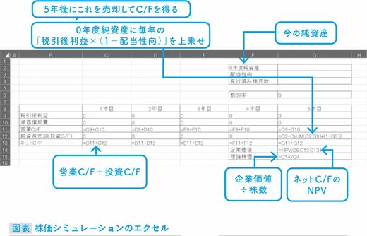 まずはセブンからやってみよう。本来は長計、中計で計画した利益、減価償却費を入れていくのだが、ここではとりあえずセブンが5年間、現状のままで今後利益、減価償却費が推移すると考えてみる。
