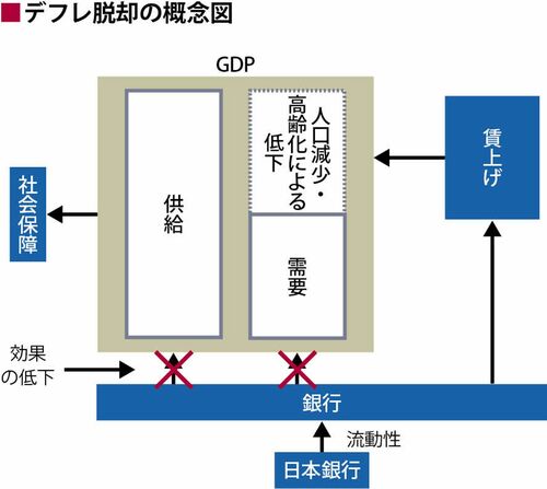 日本では人口が減少しているうえ、高齢化が進むので、お金を借りる人は減る一方です。お金を使う人の数も減っていますので、構造的な減少要因が拡大しています。量的緩和は、しないよりはしたほうがいいのですが、日銀の狙いであるインフレを引き起こせるほどの効果は期待できません。