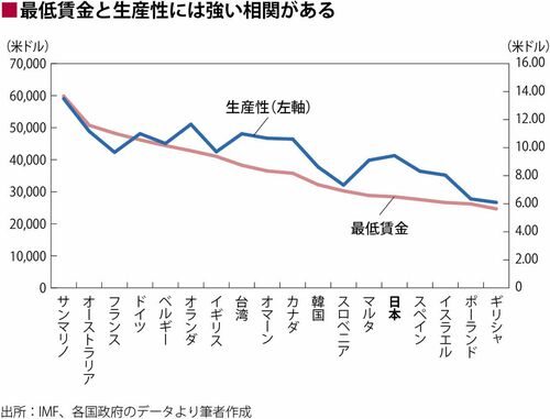 生産性と最低賃金との間には、強い相関関係があります。これは周知の事実です。