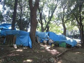 公園内で暮らしている人は、よくテントを作って生活していた。