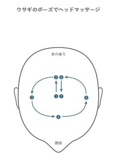 ちなみに、このウサギのポーズをとったら、少し頭頂部周りを動かすことをお勧めします。頭頂部を図の1〜7に沿って動かしてみてください。