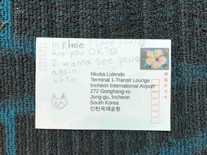 そしてロデちゃんは、一枚のポストカードをうれしそうに見せてくれた。熊本の小都ちゃんからの手紙だった。「ハーイ、ロデ、愛してる。大丈夫? また会いたい。小都」と書かれていた。 アジアで見つけた大事な友達、小都ちゃんの存在は大きな心の支えになっていることだろう。