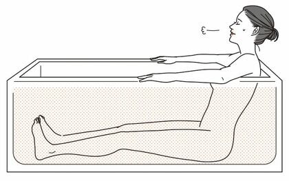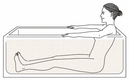 ①湯船につかったら、両手をお風呂のフチにのせるか、フチをつかんで体を安定させる。