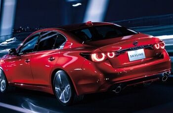 今回の改良ではエンブレムのほかにも、フロント部分に日産車のデザインを象徴する「Vモーショングリル」が採用され、リヤ部分にはかつてスカイラインのアイコンだった「丸目4灯コンビネーションランプ」も復活した。