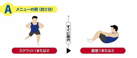 スクワットと腹筋からそれぞれ1種目ずつ紹介します。