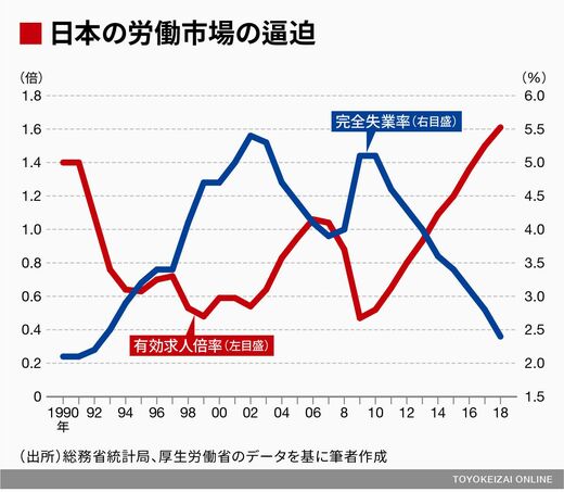 人口100万というと、47都道府県で人口(2019年6月1日推計)の多いほうから37位の富山県で104万人、38位の秋田県で97万人であり、こうした人口規模に等しい20~64歳人口が、2012年から14年にかけて1年ごとに消えていた――ちなみに、46位の島根県は68万人、47位の鳥取県は56万人でしかない。