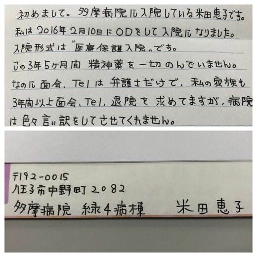 長年、精神障害者の支援活動を行ってきた佐々木弁護士は、「なぜ彼女をこれほど長期に入院させたのか。その理由がわからないという点では、これまで携わった中でも最もひどいケース。ただひどいケースではあるが、同時にごまんとあるケースでもある」と話す。米田さんも「4年間の入院生活でさまざまな患者と会ったが、なぜ入院させられているのかわからない人も少なくなかった」という。