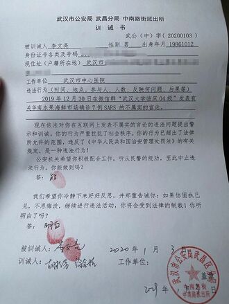 李医師:そのスクリーンショットが拡散された夜(12月31日)の1時半、武漢衛生健康委員会で会議が行われ、われわれの病院の医院長に呼び出され事情を聞かれました。夜が明けて出勤した後、再び監察科で事情聴取を受けました。私自身の状況や情報源について、自分の過ちに気がついたかなどの質問をされました。