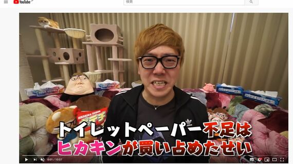 「トイレットペーパー不足はヒカキンが買い占めたせい。デマです~」。日本列島に新型コロナウイルスのニュースが駆け巡る中、トップYouTuberが投稿した動画の再生回数は、1日で300万回を超えた。