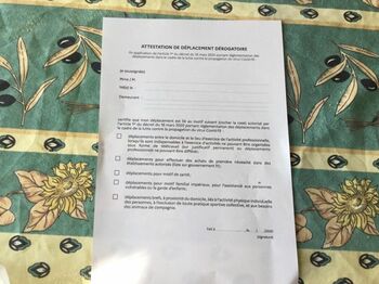 外出時には外出理由を書いた許可証を携帯しなければなりません。これに違反した場合は、135ユーロの罰金が科されます。実際、17日の正午以降、街のいたるところで警察官が車や歩行者の検問にあたっています。